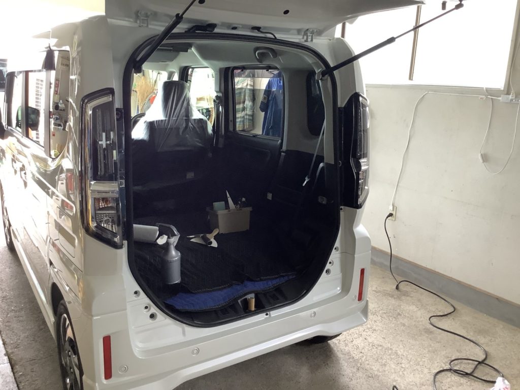 ご注文頂いておりますスペーシアカスタムに断熱フィルム施工のご依頼で本日施工です