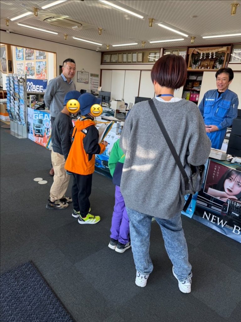 本日は地元小学生が課外授業で弊社へ見学にご来店されました。一人ひとりカタログを見ながら取り扱っている車の説明や、普段車の点検や整備はどのように行われているのかなど会社全体を案内しながら楽しく学んで頂きました。このような活動を通して子ども達が車に興味を持つきっかけになれば幸いです。12月20日は感謝祭イベント開催です。たくさんのお客様のご来店お待ちしております。