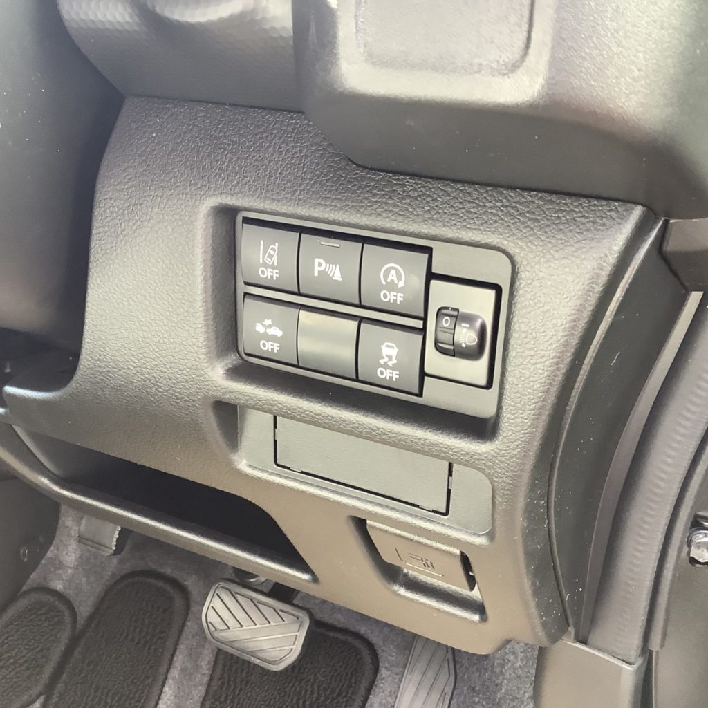 長い荷物も、たくさんの荷物も、シートアレンジで楽々! 使いやすさにこだわった、収納と室内装備 後席の乗員にうれしい収納を用意 視界性能 右左折時の横断歩行者や交通状況を把握しやすいピラーやドアミラー位置、ピラー断面とピラートリム形状の最適化などにより、視認性を向上させています。 運転姿勢と操作系 さまざまな体格の方が快適に運転できるよう配慮したシートと、操作性を考慮したステアリングホイール、ペダル、シフトレバーは、楽な運転姿勢と適切な操作性の確保により疲労を低減します。 インターフェース 視認性の高いメーターやディスプレイと、視認性や手の届きやすさ(押す、つまむ、握る)・操作方向・操作頻度などを考慮したスイッチ類の配置は、安心して運転に集中できる環境を提供します。 予防安全 危険な場面にあわないための技術 安心して、楽しくスズキのクルマに乗っていただきたいという想いから生まれた「スズキ セーフティ サポート」。事故を未然に防ぎ、お客様の万一のときの安全を確保するために、運転をサポートする様々な技術で、ヒヤリとする場面も限りなくゼロに近づけていきます。 高速道路で、車間距離を保ちながら、自動的に加速・減速。さらに停止までサポート。 アダプティブクルーズコントロール(ACC)[全車速追従機能付] 高速道路や自動車専用道路を走行中、ステアリングのACCスイッチを操作すると、ステレオカメラで先行車との距離を測定。設定した車間距離を適切に保ちながら加速・減速、さらに停止まで自動追従します。高速道路や自動車専用道路での長距離運転や渋滞走行時の発進・停止を頻繁に繰り返す状況などで、運転操作の負担を軽減します。 例:100km/hに設定した場合 電気の力で低燃費をアシスト マイルドハイブリッドを全車に搭載 発電効率に優れたISG(モーター機能付発電機)により、減速時のエネルギーを利用して発電し、アイドリングストップ車専用鉛バッテリーと専用リチウムイオンバッテリーに充電。その電力を活かして、加速時にはモーターでエンジンをアシスト。さらなる燃費の向上に貢献するハイブリッドシステムです。 汚れにも、水にも強い 防汚タイプラゲッジフロア&防汚タイプリヤシート(背面) ラゲッジフロアとリヤシートの背面は、汚れや水分を拭き取りやすい素材。思いっきり遊んだあとの服や道具を載せて汚れても、お手入れが簡単なので便利です。また、販売会社装着アクセサリー(別売)のユーティリティーカラーリングフックを取り付けられる6ヶ所のユーティリティーナットを装備しています。ku-ru